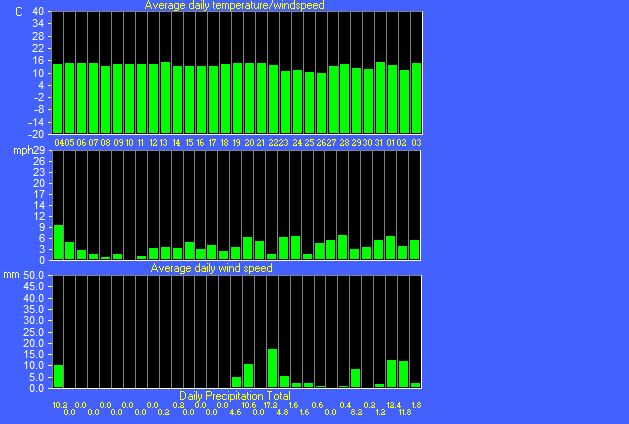 Maximum windspeed = 12.7 mph from 252°(WSW) on day 01 at time 17:44